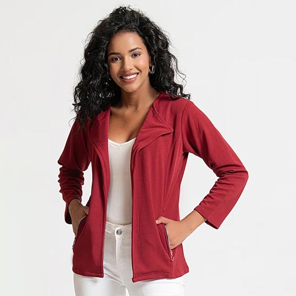 Maroon solid open front regular shrug ,has long sleeves, straight hem